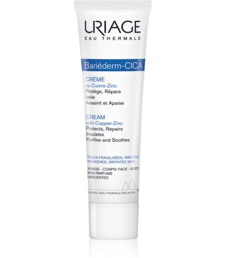 Uriage Bariéderm Cica-Cream with Copper-Zinc, 100 ml, Vartalovoide Naisille, Ominaisuudet:  uudistaa ja elvyttää suojaa ihoa haitallisilta ulkoisilta vaikutuksilta poistaa ihon punoitusta ja ärsytystä ...