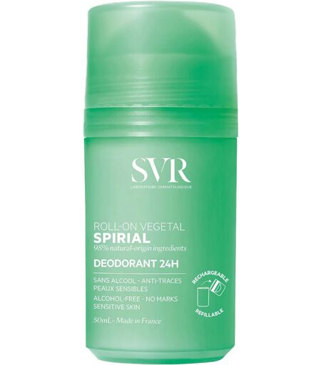 SVR Spiral Vegetal Roll-On -deodorantti, joka on rikastettu bambu-, kurkuma- ja salviauutteilla, vähentää hikoilua, imee kosteutta ja suojaa epämiellyttäviltä hajuilta jopa 48 tunnin ajan. Koostumus sisältää orgaanista piidioksidiuutetta, joka vaikuttaa hikirauhasiin. Tukkii huokoset ja estää hikoilua. Bambuuute auttaa imemään ylimääräistä kosteutta ja rasvaa. Salviauute vaikuttaa bakteereja ja sieniä vastaan tuhoamalla hajua aiheuttavia mikro-organismeja. Sopii myös herkälle iholle parranajon j ...