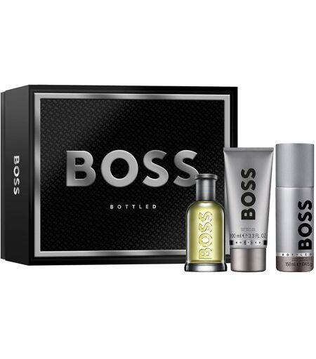 Lahjasetti sisältää: EDT 100ml + Deodorant Spray 150ml + Shower Gel 100mlBOSS Bottled on puhdas, nykyaikainen tuoksu miehelle, joka huokuu itsevarmuutta. Tämä klassikkotuoksu yhdistää eloisan raikaat ja hedelmäiset alkunuotit tuoksun mausteiseen ja lämpimän miehekkääseen pohjatuoksuun. Tuoksunuoteissa mm. kurjenpolvi, neilikka, santelipuu, setripuu ja vetiver. ...