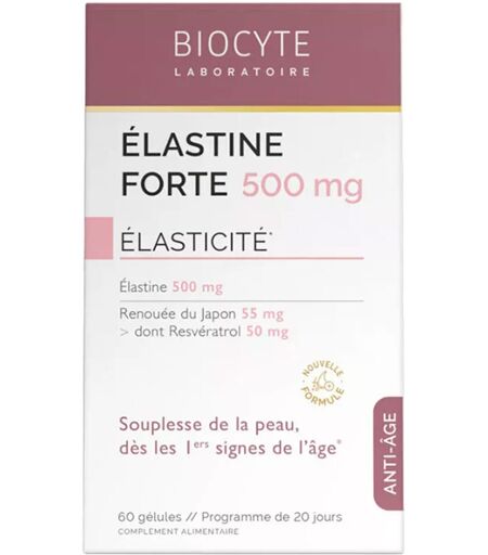 Elastiini on iholle välttämätön proteiini, joka vähentää ensimmäisiä ikääntymisen merkkejä ja varmistaa ihon kimmoisuuden ja joustavuuden. Iän myötä elastiinin tuotanto vähenee luonnollisesti. Biocyte Elastine Forte® on kapseli, jossa on korkea elastiinipitoisuus, joka auttaa poistamaan ensimmäiset ikääntymisen merkit. Elastiini on erittäin elastinen kuitu, joka pystyy palaamaan alkuperäiseen muotoonsa venytyksen jälkeen ja varmistamaan ihon joustavuuden ja kimmoisuuden. ...