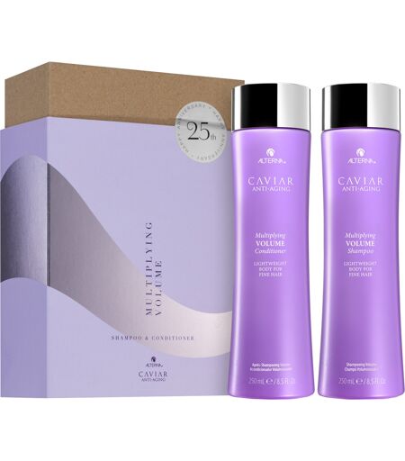 Pakkaus sisältää: Caviar Multiplying Volume Shampoo 250ml + Caviar Multiplying Volume Conditioner 250ml. Siidise tekstuuriga ALTERNA Caviar Multiplying Volume šampoon puhdab õrnalt, kuid efektiivselt kuivi ja kahjustatud juukseid, suurendab märgatavalt juuksekarva läbimõõtu, muutes juuksed pehmeks ja kohevaks. Runsaasti omega-rasvahappoja sisältävä Age-Control Complex hoitaa hiuksia intensiivisesti, suojaa niitä liialliselta kuivumiselta ja palauttaa pehmeyden ja kiillon. Aminohappoja ja ome ...
