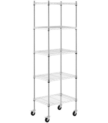 Royal Catering on suunnitellut tämän metallihyllykön niin kaupalliseen, teolliseen kuin yksityiseenkin käyttöön. Tässä metallihyllyssä on paljon säilytystilaa ja se on erittäin pitkäikäinen. Voit työntää metallihyllyn sen kaksituumaisten pyörien varassa mukavasti juuri sinne, missä sitä ja siinä säilytettyjä tavaroita parhaillaan tarvitset – olipa kyseessä hotelllin tai ravintolan keittiö, toimisto, etätyöpaikka tai liiketilat. Tässä tilavassa metallihyllykössä on viisi hyllytasoa, joiden mitat ovat 595 x 445 mm. Tähän hyllyyn mahtuu paljon säilytettävää! Jokaisen hyllytason enimmäiskuormitus on 10 kg, joten koko hyllykön kokonaiskuormitus on enintään 50 kg. Koska sen rakenne on avoin, hyllykössä oleviin tavaroihin pääsee esteettä käsiksi kaikilta puolilta. Metallihylly kootaan työntämällä sen osat yhteen. Lopputuloksena on tukeva hyllykkö, jonka kuormitettavuus on jopa suurempi kuin tavallisin ruuviliitoksin koottavien mallien. Metallihyllykön kehikko muodostuu neljästä pyörötangosta, joiden korkeus on 190 cm. Kaikki kokoamiseen tarvittavat osat sisältyvät toimitukseen. Kokoaminen käy hyvin helposti etkä tarvitse siihen mitään lisätyökaluja. ...