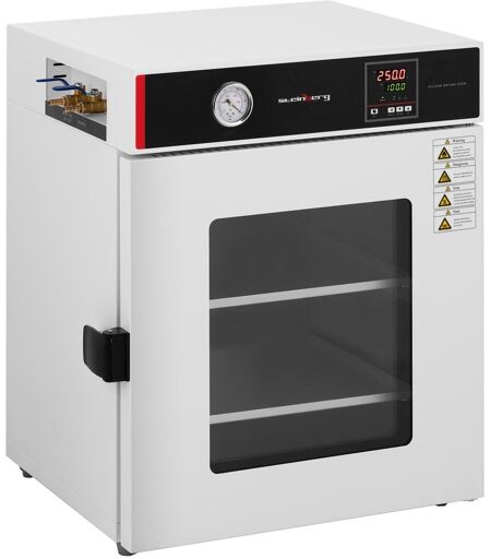 Steinberg Systemsin vakuumikaappi SBS-VDO-92 on välttämätön osa luonnontieteellistä, biokemiallista tai lääketieteellistä laboratoriota! Tarkka lämpötilan säätö ja ehdoton turvallisuus takaavat täydellisen kuivauksen ja desinfioinnin! Ammattimainen laite, jolla on korkea laatu ja kestävyys ja joka on valmistettu vankimmista ja turvallisimmista materiaaleista. Vakuumikaappi varmistaa 2100 W tehollaan sen, että voit kuivata monenlaisia esineitä ja välineitä laboratoriossasi samalla desinfioiden ja steriloiden ne. Kaappiin mahtuu kuivumaan useita astioita samanaikaisesti tilavuuden ollessa 92 l. Lämpötila voidaan asettaa tarkalleen välille huoneenlämpö + 5 °C – 250 °C. Kotelo koostuu vankasta teräksestä (Q235) ja muovista (ABS) ikkunan ollessa karkaistua lasia. Nämä materiaalit takaavat pitkäikäisyyden ja ovat myös erityisen helppohoitoisia. Vakuumikaapissa on digitaalinen LED-näyttö asetusten helppoon lukemiseen. Vakuumikaapilla on suojausluokitus EN-luokka 1 ja se voi saavuttaa jopa 133 Pa alipaineen. Sisäänrakennettu ajastin varmistaa sen, ettei sinun ei tarvitse keskeyttää työskentelyäsi kuivumisprosessin takia. Huomautus: Tyhjiöpumppu ei sisälly toimitukseen. Suosittelemme siipi-tyhjiöpumppua, jonka pumppausnopeus on 4 l/s. ...