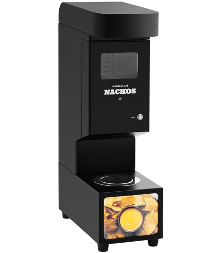 Mikä täydentää jo valmiiksi houkuttelevan nachoannoksen? Herkullinen, lämmin juustokastike tietysti! Royal Cateringin kastikeannostelijalla lisäät suussa sulavaa kastiketta herkkujesi kruunuksi. Tilavaan säiliöön mahtuu 3,5 l kastiketta pussissa tai 3 l kovassa pakkauksessa, ja se pitää nacho-juuston luotettavasti halutussa lämpötilassa. Hemmottele vieraitasi tuhdilla juustokastikkeella – elokuvateatterissa, pikaruokaravintolassa, kahvilassa tai tapahtumapaikoilla. Tee ruokakojustasi yleisömagneetti! Tämä kastikeannostelijamme modernilla muotoilulla vetää takuulla katseet puoleensa. Yhdistä se nacho-lämpökaappimme ja popcorn-koneemme kanssa, ja ihastutat asiakkaasi koko kolmiosaisella setillä! Ravintola-alan kastikeannostelija toimii 130 W:n teholla ja lämmittää nopeasti dipit ja kastikkeet haluttuun lämpötilaan. Laite lämpenee 55 - 80 °C:een asti. Optimaalisen tuloksen saavuttamiseksi lämmitä juustolla täytetty kastikepussi mikroaaltouunissa ennen sen asettamista. Ylikuumenemissuoja varmistaa turvallisuuden ja estää vauriot. Annostelijan pumppu on niin voimakas, että saat kastikepakkauksen viimeisetkin pisarat käytettyä. Näin puhdistus on helpompaa ja vältät turhaa hävikkiä. Nacho-juuston kastikeannostelija on valmistettu ruostumattomasta teräksestä ja kylmävalssatusta peltilevystä. Tästä syystä puhdistat laitteen vaivattomasti. Laitteen 4 tukevaa jalkaa pitävät huolen varmasta pidosta. ...