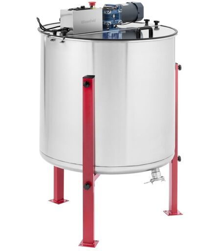Hunajalinko on yksi mehiläishoitajan tärkeimmistä työkaluista. Wiesenfieldin mehiläishoitotarpeiden sähköinen hunajalinko, johon mahtuu 6 kehää, on ihanteellinen hunajan tuotantoon pienessä tai yksityisessä mittakaavassa. Diagonaaliset lingot, kuten malli WIE-BK-58, antavat hunajan valua helposti kehistä. Lisäksi siihen mahtuvat suuremmatkin kehät. Voit käsitellä hunajasadon vain muutamalla linkouskierroksella 6 kehän kapasiteetin ansiosta, joiden enimmäiskoko on 500 x 245 mm. Suuri kattilan halkaisija 68 cm, synnyttää riittävät keskipakovoimat hunajan tehokkaaseen poistoon hunajakennoista. 6-kehäinen hunajapuristin toimii sähköisesti ja sen teho on 250 W. Kymmenen nopeustason ansiosta voit määrittää linkousnopeuden yksilöllisesti; Pyörimissuunnan voi säätää yhtä joustavasti. Hätäpainike mahdollistaa turvallisen käytön. Keskipakorunko ja kennokori on valmistettu korkealaatuisesta ruostumattomasta teräksestä ja täyttävät hygieenisen hunajan tuotannon vaatimukset. Materiaali on myös erityisen kestävää ja helposti puhdistettavissa käytön jälkeen. Ruostumattomasta teräksestä valmistettu hunajapuristin on hieman kohotettu kolmella tukevalla rautajalalla, mikä helpottaa hunajan täyttämistä. Tyhjennyshana mahdollistaa lingon siistin ja täsmällisen tyhjentämisen. Läpinäkyvän akryylilasisen kannen avulla voit seurata keskipakoprosessia koko ajan, mikä antaa sinulle täyden hallinnan hunajasadosta. ...