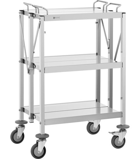 Tarjoiluvaunu - ruostumaton teräs - 3 tasoa - tasot: 58 x 40 cm - 100 kg - kokoontaitettava - Royal Catering RCSW-100