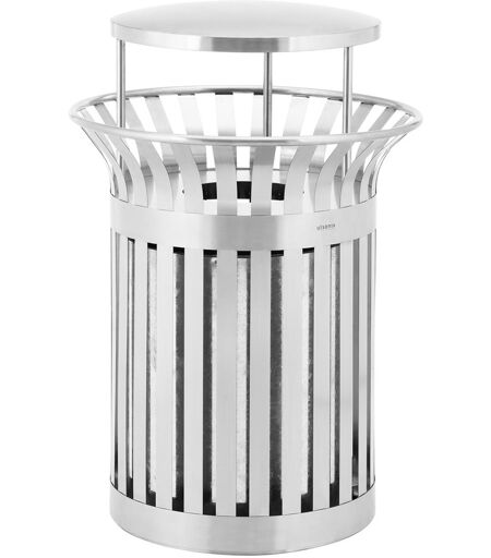 Yksinkertainen, tyylikäs ja käytännöllinen: ulsonixin jäteastialla pidät paikat siistinä sisällä ja ulkona. Roska-astia on 105 cm korkea ja sen halkaisija on 73 cm, joten siihen mahtuu paljon jätettä kerralla. Pyöreä katto suojaa leveää suuaukkoa sateelta. Roskakori on valmistettu kestävästä ruostumattomasta teräksestä ja galvanoidusta teräksestä. Kummatkin materiaalit eivät ole pelkästään tyylikkäitä, vaan ne voidaan myös puhdistaa nopeasti ja helposti. Lisäksi roska-astian yläosa on irrotettava. Galvanoidusta teräksestä valmistetun sisäastian mitat ovat 42 x 52 cm. Pyöreä katto estää näkyvyyden jäteastian säiliöön ja tekee näin kokonaiskuvasta siistimmän. Erityisen leveä suuaukko takaa, että roskis on helppo tapa hävittää kaikenlaiset jätteet. Jäteastia voidaan kiinnittää alustaan ruuvilla. ...