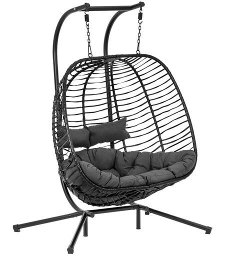 Uniprodo Riipputuoli telineellä - ulkokäyttöön - kahdelle hengelle - kokoontaitettava istuin - musta/harmaa UNI_HC_04