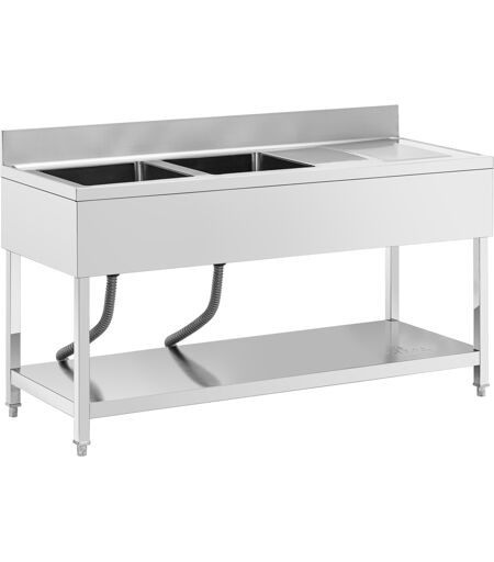 Tiskipöytä - 2 allasta - ruostumaton teräs - 160 x 60 cm - Royal Catering RCGS-2B1600D6