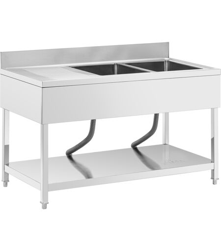 Tiskipöytä - 2 allasta - ruostumaton teräs - 140 x 70 cm - Royal Catering RCGS-2B140D7