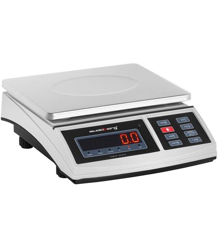Pöytävaa’alla SBS-TW-30 saat tarkat punnitustulokset, jotka voit lukea etupuolen LED-näytöltä mukavasti. Vaaka on tarkoitettu enintään 30 kg painaville esineille, jotka se punnitsee 1 g tarkkuudella. Se sopii ihanteellisesti tarveaineiden, postilähetysten, ruuvien ja monien muiden esineiden tarkkaan punnitsemiseen. Vaaka on valmiiksi kalibroitu, joten se on heti käyttövalmis. Digitaalisessa pöytävaa‘assa on etupuolella laadukas LED-näyttö punnitustulosten mukavaan lukemiseen. 20 mm korkeat luvut ovat hyvin luettavissa myös epäedullisista kulmista. Varoitusmerkki ilmoittaa vaa’an ylikuormittumisen. Pöytävaa’assa on erilaisia, käteviä toimintoja. Punnitusyksikön lisäksi voit valita toiminnoksi laskun, prosenttilaskun, taarauksen tai nollauksen. Vaa’an käyttö selkeillä näppäimillä on erittäin yksinkertaista. Laite on varustettu RS232-liitännällä, mikä mahdollistaa sen yhdistämisen kassaan tai tietokoneeseen. Vaa’an suunnittelussa keskityttiin erityisesti kompaktiin muotoiluun. Ruostumatonta terästä olevalle, 21 x 27 cm punnitustasolle mahtuvat kätevästi kaikki kaupalliset tavarat. Vaa’an jalat ovat säädettävissä, jotta se voidaan sijoittaa optimaalisen vaakasuoraan, mikä voidaan varmistaa vaa’an sisäänrakennetun vatupassin avulla. Pöytävaaka on varustettu 6 V 4 Ah akulla pitkäaikaisen käytön takaamiseksi. Se mahdollistaa jopa 80 tunnin käytön. Digitaalisessa pöytävaa’assa on lisäksi energiansäästötila, johon se siirtyy automaattisesti, kun sitä ei ole käytetty 3 sekuntiin. Akun lataustaso on luettavissa näytöltä. Tätä vaakaa ei voi virallisesti varmentaa, joten se soveltuu yksinomaan tarkistusvaa’aksi tai sisäiseen käyttöön. ...