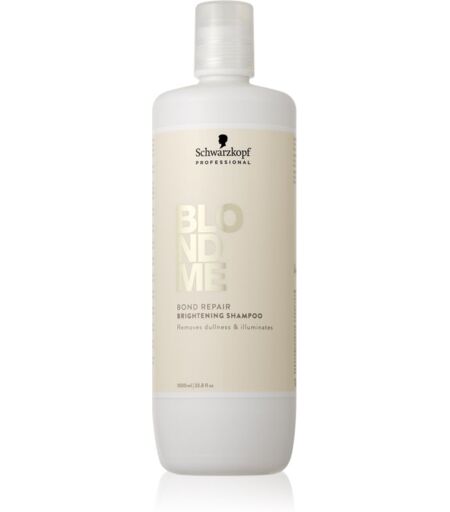 Schwarzkopf Professional Blondme Bond Repair Brightening Shampoo, 1000 ml, Hiustenpesuaineet Naisille, Shampoo Schwarzkopf Professional Blondme puhdistaa päänahan tehokkaasti, pesee hiukset perusteellisesti ja palauttaa niiden luonnollisen kauneuden.  Ominaisuudet:  pesee hiuksia ja puhdistaa päänahkaa antaa kiiltoa ja volyymiä jättää hiukset pehmeiksi silottaa hiuskuituja  Ainesosat:  vegaaninen tuote  Käyttöohjeet: Levitä sopiva määrä shampoota märkiin hiuksiin. Vaahdota ja huuhtele huolellisesti. ...