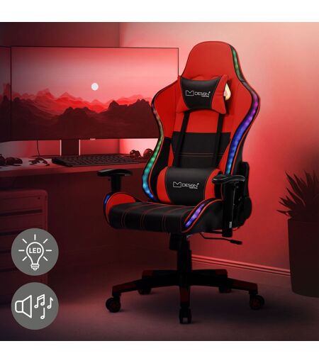 ML-Design Pelaajan tuoli RGB LED-valaistuksella ja Bluetooth-kaiuttimilla; punainen; keinonahka; ergonominen toimistotuoli; korkea selkänoja;