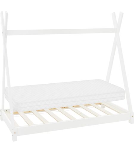 Lasten sänky Tipi, jossa on ristikkorunko ja patja 70x140 cm valkoinen, mäntyä ML-Design