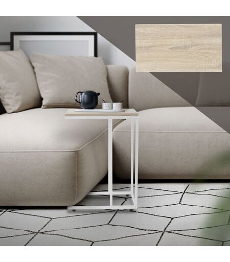 ML-Design Sivupöytä C-muodossa; valkoinen-tammi; 45x25x64 cm; metallirunko & puulevy; sohvan alle; teollinen muotoilu; sohvapöytä; olohuoneen pöytä;