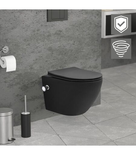 Reunaton seinään kiinnitettävä WC lyhyt 49 cm Musta bideetoiminnolla ja Tornado-huuhtelulla LuxeBath