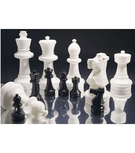 Rollyn pienemmät pihashakkinappulat, jotka voi täyttää hiekalla tai vedellä Nappuloiden koko: Kuningas 30 cm Kuningatar 29 cm Lähetti 26 cm Ratsu 21 cm Torni 21 cm Sotilaat 20 cm ...