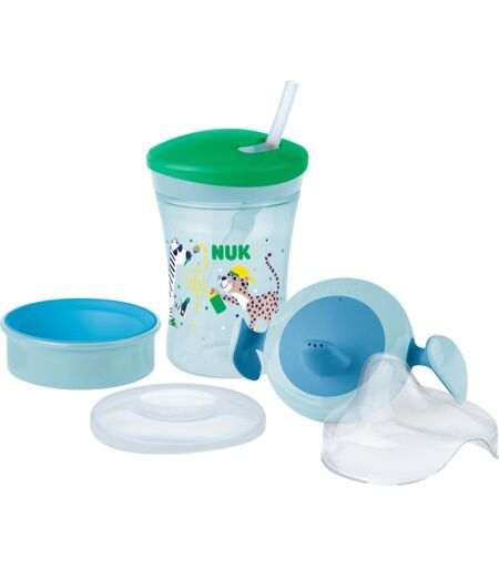 NUK Learn to Drink Set, , Lasten mukit Lapsille, Haluatko lapsesi oppivan juomaan säännöllisesti? Sitä helpottaa lapsille suunniteltu muki NUK Learn to Drink Set , jonka koko on sopiva lapsen käsiin. Leikkisä ulkonäkö myös ilahduttaa lasta. Ominaisuudet: käytännöllinen koko ei valuta ihanteellinen matkoille ruuvattava kansi helppo täydentää lisäosilla pehmeä nokka harjoitusmuki sopii matkalle lapsia miellyttävä kuviointi Setin sisältö: kuppi 230 ml Trainer Cup kansi 1 kpl Magic kansi 1 kpl Action Cup kansi 1 kpl ...