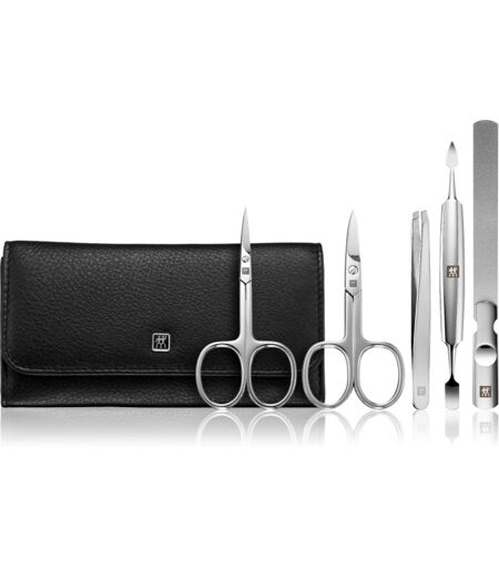Zwilling Classic Inox,  , Kosmetiikkasetit Naisille, Setin sisältö:  pinsetit 9 cm kynsisakset 9 cm safiirikynsiviila kynsiin 13 cm kynsinauhatyönnin 12 cm kotelo 1 kpl kynsi- ja kynsinauhasakset 9 cm  Ominaisuudet:  viila on erittäin hellävarainen kynsinauhoille, eikä aiheuta hiertymiä nyppii karvat tarkasti ja kivuttomasti muotoilee ja lyhentää kynsiä ...