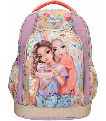 TOPModel-koululaukun etutaskussa on suuri kuvio kirkkaissa väreissä. Vetoketjut ja sivutasku lisäävät kauniita väriä. Pehmustettu selkäosa, vettä ja likaa hylkivä pohja, heijastavat yksityiskohdat ja käytännöllinen järjestely kynille ja avaimille. Supersöpö lisä: riipus vetoketjussa. ...