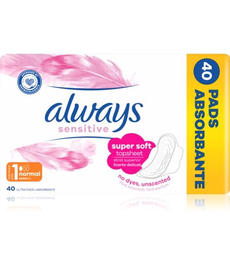 Always Sensitive Normal Plus, 40 kpl, Terveyssiteet Naisille, Maksimaallinen mukavuus ja 100-prosenttinen suoja kuukautiskierron aikana. Terveyssiteet Always Sensitive Normal Plus varmistavat mukavan ja varman tunteen vuotopäiviesi aikana. Ominaisuudet: imukykyinen sisus, joka imee ja lukitsee nesteen sisäänsä imujärjestelmä, jossa on nesteen koko pinnalle levittävät kanavat siivet suojaavat alusvaatteiden reunoja istuu täydellisesti ja säilyttää muotonsa hyvin erittäin hengittävä koko on ihanteellinen keskirunsaan vuodon päiviin ...