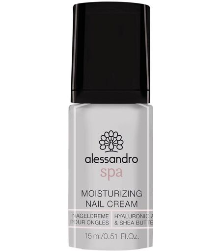 ALESSANDRO Spa Moisturizing Nail Cream kosteuttaa intensiivisesti hauraita ja hilseileviä kynsiä ja edistää kynsien kasvua. Sisältää hyaluronihappoa, ruusuvettä, sheavoita ja mangovoita. ...