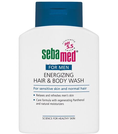 SEBAMED Men Energising Hair & Body Wash on suihkugeeli, joka puhdistaa ihon ja hiukset kuivattamatta niitä ja aiheuttamatta ärsytystä. Uudistava pantenoli hoitaa ihoa hellävaraisesti. Pesuaineen pH on 5,5, mikä vastaa ihon luonnollista pH-arvoa ja tukee ihon suojakerroksen toimintaa. Yleisgeeli sopii vartalon ja hiusten pesuun.Ohjeet: Levitä kostealle iholle ja hiuksiin, vaahdota ja huuhtele huolellisesti. ...