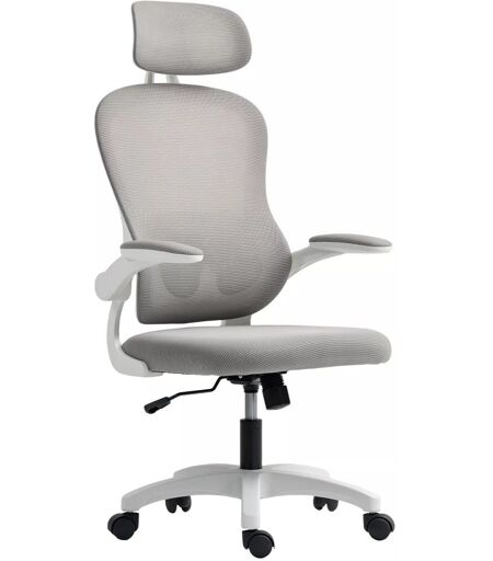 HOMCOM Ergonominen toimistotuoli verkkoselkänojalla, korkeussäädettävä, kokoontaitettavat käsinojat, 5 pyörää, keinumekanismilla, harmaa