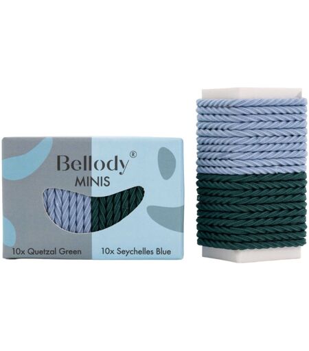 BELLODY Minis Hair Ties Quetzal Green x10 + Seychelles Blue x10