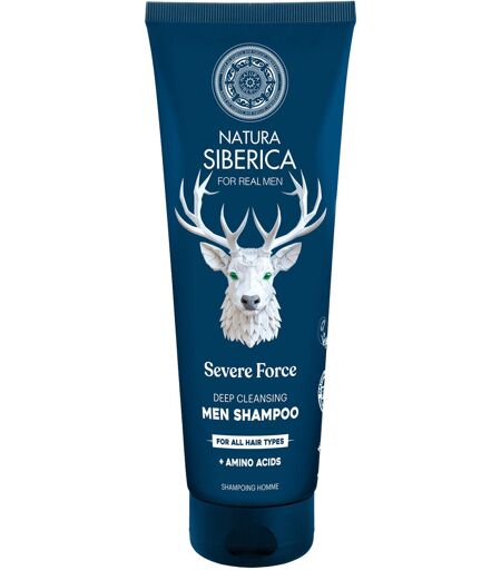NATURA SIBERICA Men Arctic Wild Severe Force Deep Cleansing Shampoo poistaa tehokkaasti ylimääräisen rasvan, lian ja viimeistelytuotteen jäämät jättäen hiukset raikkaiksi, tuuheiksi ja käsiteltäviksi. Se sisältää villiyrttiuutteita ja Altain tyrniöljyä, vahvistaa hiusjuurta ja parantaa hiusten kimmoisuutta. Arktisen katajan uute toimii luonnollisena antiseptikkona, stimuloi verenkiertoa ja jättää päänahkaan virkistyneen tunteen. Lakritsijuuriuute kosteuttaa ja rauhoittaa sekä tukee hiuspohjan lu ...