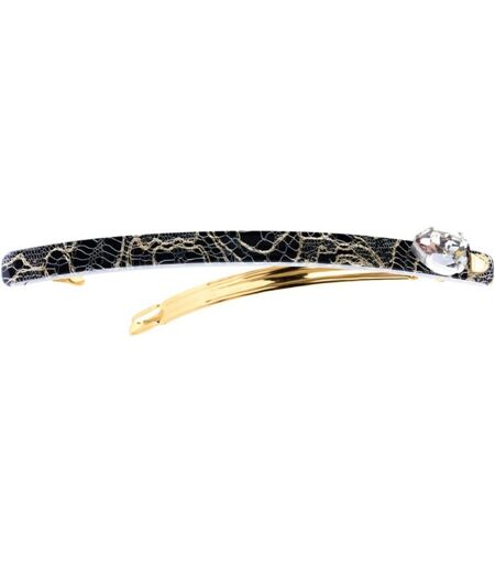 Ylellinen ja kiiltävä hiusklipsi, jossa on erottuva ja huomiota herättävä muotoilu. Yksinoikeutta lisäävät kultainen pitsi ja ihanan kiiltävä Swarovski-kristalli. Viehättävää hiuslisäkettä voi käyttää sekä arkeen että juhlaan. Käsityönä valmistettu biomuovista. Upea ja miellyttävä lahja juhlatilaisuuteen! Pakattu ylelliseen Dondella-lahjapakkaukseen!Kristalli: SwarovskiVäri: Musta, kultaMetallilukko on kullattuOven lukon koko 11cm. ...