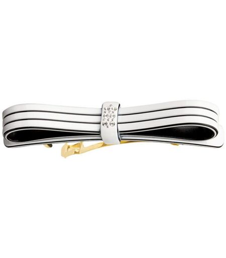 DONDELLA Hair Clip White/Black Stripe Bow 8cm