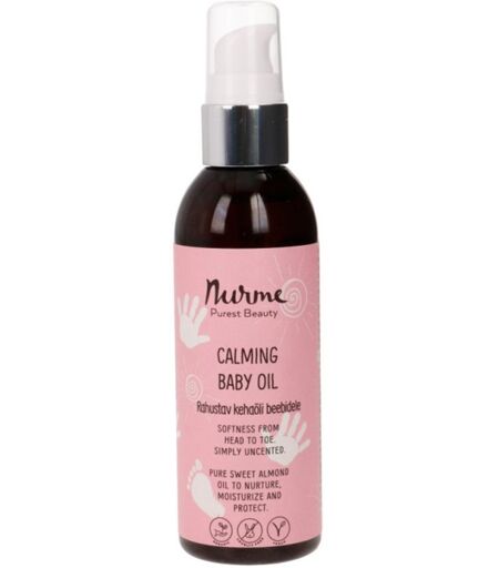 NURME Soothing Body Oil for Babies on valmistettu nopeasti imeytyvästä manteliöljystä, joka auttaa ehkäisemään ihon kuivumista ja pitämään herkän vauvan ihon pehmeänä ja kosteutettuna. Käytä manteliöljyä päivittäin hieromiseen tai levitä vain kuiville alueille. Erittäin tehokas vauvojen virheitä vastaan, sillä se on kevyempi öljy, joka pehmentää kuoria vahingoittamatta herkkää uutta ihoa. Tunnetuin suoja vaippaihottumaa vastaan. ...