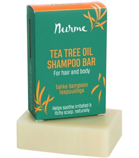 NURME Tea Tree Oil Solid Shampoon ainesosat ravitsevat hiuksia, mutta sitä voidaan käyttää myös koko vartalolla! Kaavan sisältämä sheavoi ravitsee ja pehmentää hiuksia. Teepuu rauhoittaa kutisevaa päänahkaa ja edistää hiusten kasvua. ...