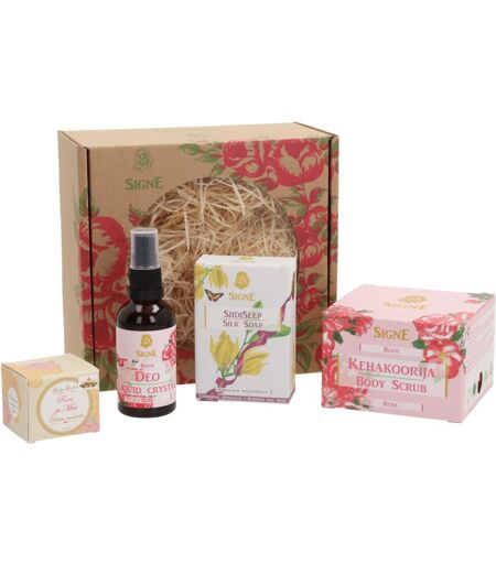 Pakkaus sisältää: + Ruusu ja hunaja huulivoi 15ml + Ruusukukkainen vartalokuorinta 200g + Silkkisaippua 100g. SIGNE SEEBID Crystal Deodorant Rose on valmistettu maankuoresta peräisin olevista kiteistä, jotka tarjoavat tehokkaan antiperspiranttisen suojan. Ruusu geranium kantaa naisellista ja kypsää ruusun tuoksua. Kristallisuola eli maasuola muodostaa iholle ympäristön, joka estää hajua tuottavien bakteerien kasvua, jolloin iho voi hengittää luonnollisesti. Eteerinen ruusupelargoniöljy tuke ...