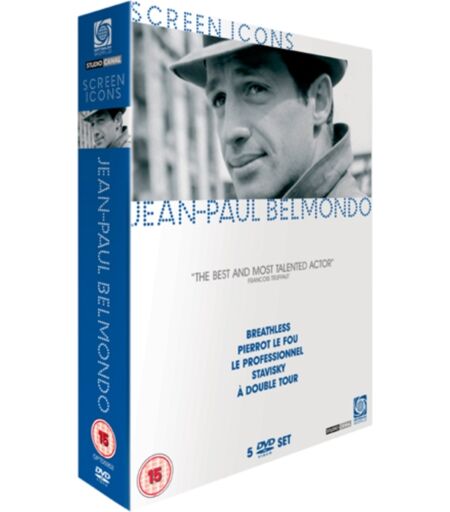 5-disc box set highlighting the work of the effortlessly cool Jean Paul Belmondo. 'Breathless' (1960), is Jean-Luc Godard's groundbreaking tale of the brief love affair between petty criminal Michel (Belmondo) and young American student Patricia (Jean Seberg). Michel has killed a motorcycle cop and is now hiding out in Patricia's Paris apartment, but the police are getting closer, and as Michel falls deeper in love with Patricia, his time also gets shorter and shorter. Godard's film, one of the first and most important statements of the French New Wave, caused a revolution in the way films were made, opening up many new, previously untried possibilities for cinema. 'Pierrot Le Fou' (1965), is one of Godard's best films in which Ferdinand (Belmondo) leaves his wife and child and runs off with the babysitter Marianne (Anna Karina). The pair head south to find Marianne's brother, Ferdinand gets caught up in Marianne's crimes along the way as the pair spiral towards destruction. Memorable for Raoul Coutard's deep and lush photography, it offers a spontaneous musical sequence under the pine trees, elements of the gangster genre and a tragic account of the transience of love, meanwhile Godard manages to address the nature of the film medium itself. In 'Le Professionnel' , Belmondo plays French secret agent Joss Beaumont, sent to Africa to assassinate a head of state. Before he can complete his task however, the political climate changes, meaning Beaumont is sacrificed to the authorities and jailed. After escaping, he returns to France, warning his old superiors that he intends to complete his mission when the African leader arrives on a state visit. In 'Stavisky' (1974), Belmondo plays the French con-man extraordinaire, who managed to charm his way into the highest strata of French society, mainly on the back of phony bonds. Set in the period prior to WWII, the resulting financial scandal shook national confidence and came close to ending in civil war. Set in the vineyards of Provence, 'A Double Tour' (1959), concerns the death of Leda (Antonella Lualdi), who is having an affair with her neighbour, the local Patron, Henri Marceaux (Jacques Dacqmine). Henri's son and wife are both aware of the affair, indeed the son has been sampling Leda's charms for himself. Belmondo himself plays an Hungarian idler, the admirer of Henri's daughter (Jeanne Valerie). ...