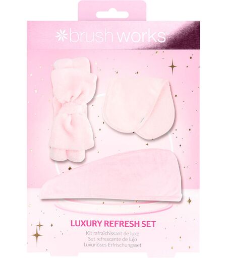 Setti sisältää: meikinpoistoaine + ylellinen hiuspyyhe + meikkipannu. Pehmeä ja uudelleenkäytettävä Brushworks-meikinpoistoaine puhdistaa meikin iholta hellävaraisesti pelkällä vedellä ilman puhdistusainetta jättäen ihon raikkaaksi ja pehmeäksi. Ympäristöystävällinen ja pestävä, ihanteellinen jokapäiväiseen ihonhoitoon. Pehmeä ja erittäin imukykyinen Brushworks Luxury Towel auttaa hiuksia kuivumaan nopeammin poistamatta ylimääräistä kosteutta. Hellävarainen mikrokuitumateriaali vähentää ...