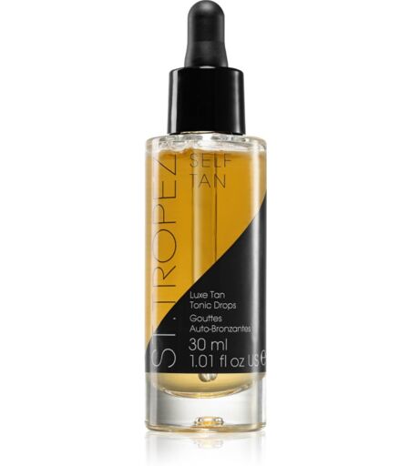 St.Tropez Self Tan Luxe Tan Tonic Drops, 30 ml, Itseruskettavat Tuotteet Naisille, Ominaisuudet: pehmentää ja silottaa ihoa levittyy helposti tummentaa ihon sävyä asteittain jättää ihon pehmeäksi ja sileäksi levittyy helposti ja imeytyy erinomaisesti antaa iholle terveen, auringon suuteleman ilmeen sopii kasvoille ja vartalolle Ainesosat: C-vitamiini – antaa antioksidanttista suojaa vapaiden radikaalien haitoilta, ehkäisee pigmenttiläiskiä, tasoittaa ihon värisävyä ja lisää ihon heleyttä, edistää kollageenin tuotantoa sekä hidastaa ikääntymistä hyaluronihappo – sitoo itseensä suuren määrän vettä ja kosteuttaa tehokkaasti E-vitamiini – ravitsee, antaa antioksidanttista suojaa ennenaikaiselta ikääntymiseltä ja vapaiden radikaalien haitoilta, auttaa silottamaan ryppyjä sekä palauttamaan ihon kiinteyden ja kimmoisuuden Käyttöohjeet: Levitä sopiva määrä tuotetta koko vartalolle. Levitä huolellisesti ja tasaisesti. ...