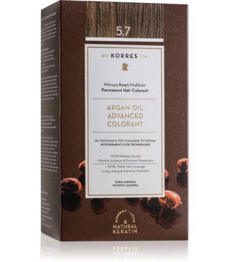 Korres Argan Oil kestohiusväri sisältää arganöljyä sävy 5.7 Chocolate 50 ml