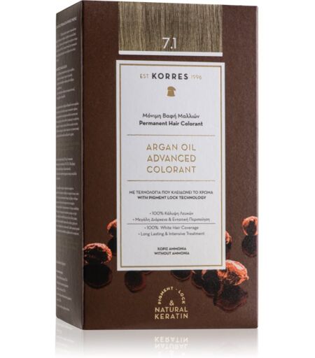 Korres Argan Oil kestohiusväri sisältää arganöljyä sävy 7.1 Ash Blonde 50 ml