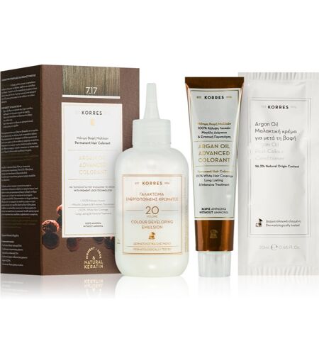 Korres Argan Oil kestohiusväri sisältää arganöljyä sävy 7.17 Dark Blonde Beige 50 ml
