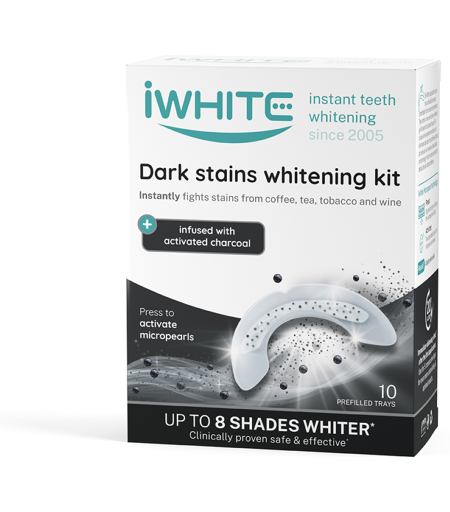 iWhite Dark Stains valkaisumuotit on helppokäyttöinen, hampaille turvallinen, välittömästi valkaiseva hampaidenvalkaisutuote, jossa on aktiivihiiltä sisältäviä aktiivisia mikrohelmiä. Käsittely kestää vain 20 minuuttia päivässä ja voit saada jopa 8 astetta valkoisemmat hampaat.Kertakäyttöiset iWhite-muotit ovat ohuita ja joustavia, joten ne istuvat hyvin ja toimivat tehokkaasti. Ne sisältävät uutta mullistavaa valkaisugeeliä, joka on kyllästetty aktiivihiilellä. Tämä ainutlaatuinen aktiivinen ainesosa neutraloi ja eliminoi kahvin, teen, tupakan ja punaviinin aiheuttamia tummia värjäymiä.Tuotteen teho perustuu kaksivaikutteiseen valkaisutekniikkaan:Vaihe 1: Aktiivihiiltä sisältävät mikrohelmet korjaavat tummentumia ja auttavat pahanhajuiseen hengitykseen. Aktiivihiilen voimakkaasti adsorboivien ominaisuuksien ansiosta voit heittää hyvästit värjäymille.Vaihe 2: Heksametafosfaatti ehkäisee uusien värjäymien syntymistä. Se muodostaa hammaskiilteeseen suojaavan kerroksen, jonka ansiost ...