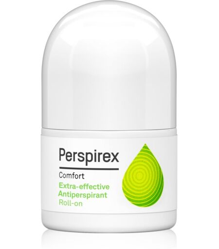 Perspirex Comfort, 20 ml, Antiperspirantit Naisille, Antiperspirantti Perspirex Comfort imee hikeä optimaalisesti ja neutralisoi hajua. Tuote antaa sinulle joka päivä raikkaan ja puhtaan tunteen.  Ominaisuudet:  suojaa tehokkaasti hikoilulta suojaa epämiellyttävältä hajulta antaa pitkäkestoisen hyvän olon ja puhtauden tunteen  Käyttöohjeet: Levitä kainaloihin puhtaalle ja kuivalle iholle. ...