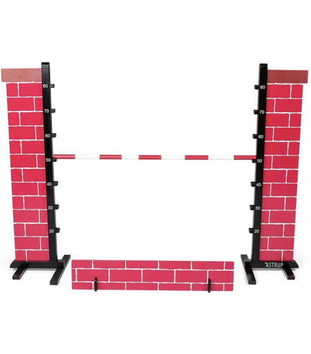Vie upea hevosharjoittelusi uusiin korkeuksiin byASTRUP-hyppyareenan aidalla, jossa on vaikuttava tiilimuotoilu. Tämä aita on saanut inspiraationsa haastavista ja rohkeista hyppyistä, joita koet hyppääessäsi tiiliseinän yli. Uskallatko jättää väliin? Haasta itsesi ja hevosesi hyppäämään mahdollisimman korkealle. Ehkä jonain päivänä pystyt hyppäämään yhtä korkealle kuin idolisi tai jopa ylittämään vaikuttavia ennätyksiä! Aidan korkeutta voidaan säätää 20 cm:stä 80 cm:iin 10 cm:n välein, jolloin voit mukauttaa haasteen taitojen ja iän mukaan. Älykäs rakenne tarkoittaa, että sauva putoaa helposti, jos siihen osuu. Tämä hyppyaita sopii täydellisesti sekä ulkona leikkimiseen että harjoitteluun, ja siinä yhdistyvät jännitys ja mielikuvitus, mikä tekee harjoittelustasi sekä hauskaa, inspiroivaa että täynnä seikkailua. ...