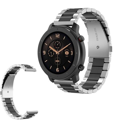 Huawei Watch GT / Watch 2 Pro / Samsung Gear S3 / Amazfit GTR 47mm ruostumattomasta teräksestä valmistettu ranneke - Hopea / Musta / Hopea