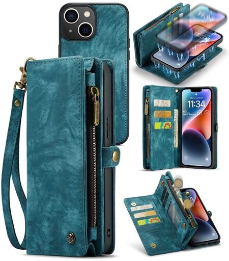 Apple CaseMe iPhone 14 Zipper Lompakko - Sininen