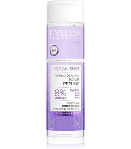 Eveline Cosmetics Clean Shot 8% Complex Of Hydroxy Acids silottava hoitovesi kuoriva vaikutus 200 ml