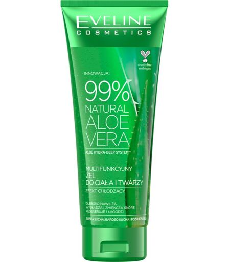 Eveline Cosmetics 99% Natural Aloe Vera, 250 ml, Vartalovoiteet Naisille, Vartalogeeli Eveline Cosmetics 99% Natural Aloe Vera hoitaa koko vartalon ihoa, kiinteyttä sitä ja samalla antaa miellyttävän tunteen. Ominaisuudet: estää ihon kuivumista parantaa ihon elastisuutta kosteuttaa ja ravitsee syvältä pehmentää ja silottaa Ainesosat: sisältää vähintään 99 % luonnollisia ainesosia Käyttöohjeet: Levitä puhtaalle iholle joka aamu ja ilta. Hiero kevyesti. ...