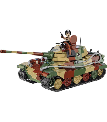 Tiger II, joka tunnetaan myös nimellä Königstiger (tunnetaan kansansa nimellä Kings Tiger), oli saksalainen raskas panssarivaunu, jota käytettiin toisen maailmansodan aikana. Ensimmäistä kertaa COBI:n valikoimassa suurin tiikeri on suunniteltu mittakaavassa 1:35 ja sille on annettu sodan viimeiselle ajanjaksolle tyypillinen värikäs naamiointi. Mallissa on liikkuvat pyörät, toimivat telat, pyörivä torni, jossa on liikkuva tykki, luukku johon voit sijoittaa hahmon, irrotettava moottori ja monia muita yksityiskohtia! PANZERKAMPFWAGEN VI Ausf. B KONIGSTIGER otettiin käyttöön vuonna 1944 ja se oli yksi aikansa tehokkaimmista tankeista. Tiger II yhdisti paksun panssarin, joka ulottui jopa 180 mm:iin rungon etuosassa, tehokkaan 88 mm:n KwK 43 L/71 aseen kanssa, mikä teki siitä valtavan vastustajan taistelukentällä. Se painoi noin 70 tonnia. Maybach HL230 P30 -moottori, jonka teho on 700 hv, mahdollisti sen saavuttamaan jopa 38 km/h nopeuden tiellä. Huolimatta vaikuttavasta taistelusuorituskyvystään Tiger II:ssa oli lukuisia teknisiä ongelmia, mukaan lukien toistuvia moottori- ja alustaviat. Sen monimutkainen suunnittelu ja valtava resurssien kulutus tekivät tuotannosta kallista ja aikaa vievää. Yhteensä valmistettiin noin 492 yksikköä. Tiger II osallistui moniin keskeisiin taisteluihin, mukaan lukien Bulgen taistelu ja taistelut itärintamalla. Sen läsnäololla taistelukentällä oli suuri psykologinen merkitys, mutta käytännössä sitä rajoittivat usein logistiset ja tekniset ongelmat. Puutteistaan huolimatta Tiger II on edelleen yksi toisen maailmansodan tunnetuimmista ja tunnistetuimmista tankeista. 802 korkealaatuista elementtiä Valmistettu EU:ssa yrityksessä, jolla on yli 20 vuoden perinteet Lohkot täyttävät lapsille tarkoitettujen tuotteiden turvallisuusstandardit Täysin yhteensopiva muiden merkkien rakennussarjojen kanssa Paineiset lohkot eivät naarmuta, eivät hankaudu eivätkä haalistu pelin aikana tai altistuessaan lämpötilalle 1 kuvio Nimikilpi Irrotettava minimoottorimalli Mittakaava 1:35 ...