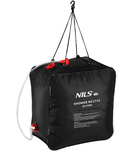 NC1713 NILS CAMP -retkisuihku on 40 litran säiliön ansiosta loistava valinta ulkoilmaelämään. Auringon lämmittämä vesi voi saavuttaa jopa 48 °C, ja mukana tulevan letkun ja suihkupään ansiosta peseytyminen on helppoa missä tahansa. Ripustettavissa puuhun tai tankoon. Kevyt, kestävä ja valmis käyttöön koko perheelle! ...